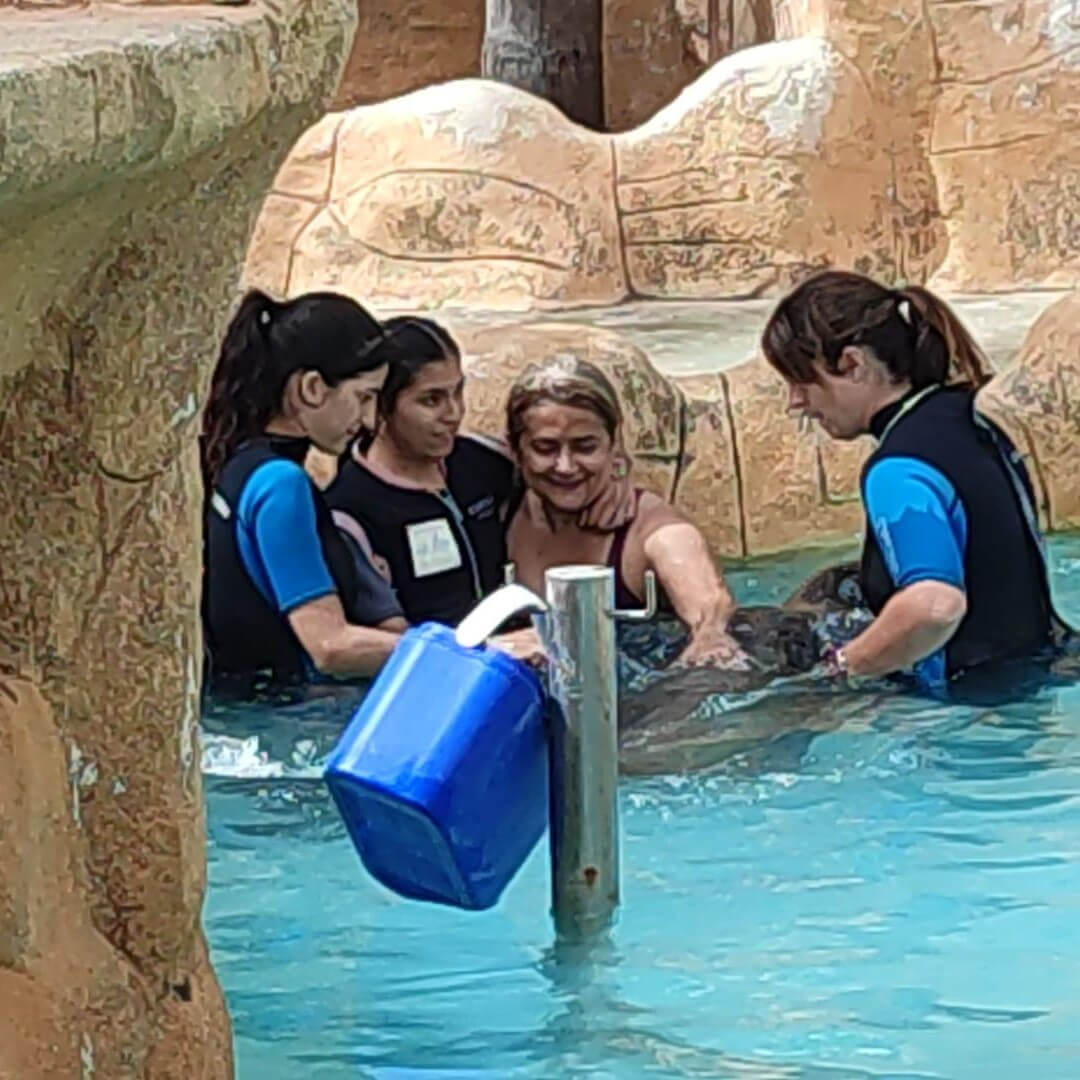 El evento fue mucho más que un simple baño; fue una oportunidad para que nuestros usuarios se sumergieran en un entorno nuevo, estimulante y lleno de maravillas. El contacto con los leones marinos no solo fue emocionante, sino también terapéutico, promoviendo la relajación y la alegría en cada uno de los participantes.